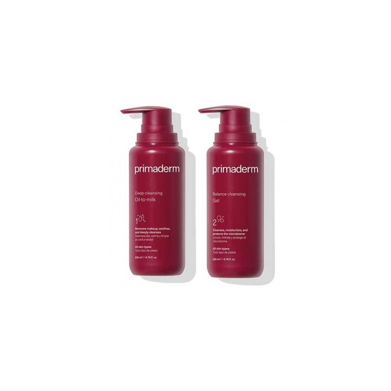 PRIMADERM Pack Doble Limpieza Oil-Milk + Gel 2 x 200 ml es la elección perfecta para quienes buscan una rutina de limpieza facial completa y equilibrante que deje la piel limpia, suave y preparada para los tratamientos diarios.