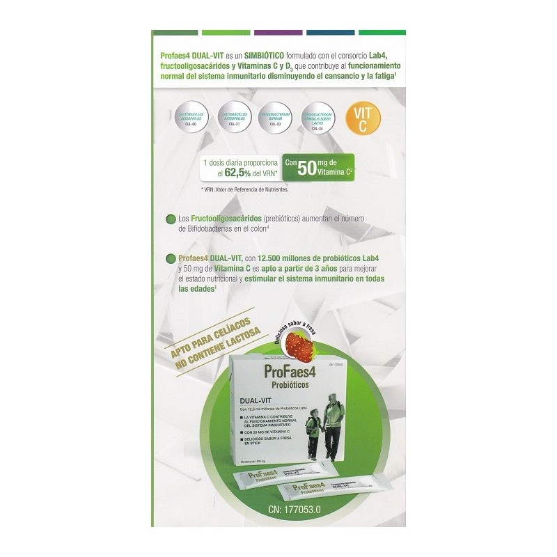 Los sticks de Profes4 Dual-Vit ofrecen una conveniente y efectiva fuente de vitaminas y minerales, formulada para promover la salud general y el bienestar diario.