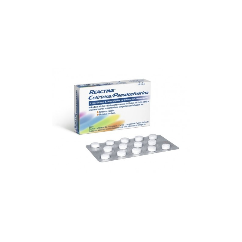 Más informaciónREACTINE CETIRIZINA/PSEUDOEFEDRINA 5/120 MG 14 COMPRIMIDOS LIBERACION PROLONGADA