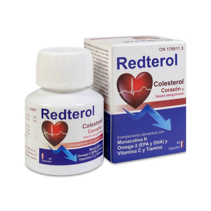 Redterol es un suplemento diseñado para contribuir al mantenimiento de niveles normales de colesterol en sangre, apoyando así la salud cardiovascular. Su fórmula incluye monacolina K (procedente de la levadura roja de arroz), que ayuda a regular el colesterol LDL, junto con coenzima Q10, que protege frente al estrés oxidativo y favorece la producción de energía celular.