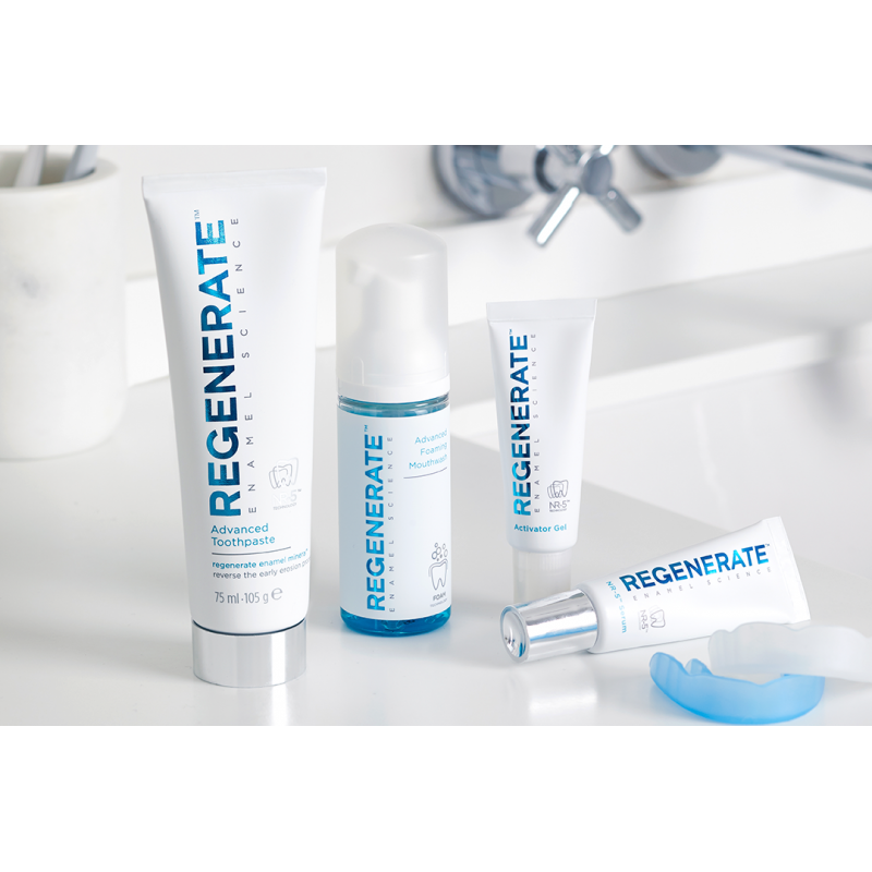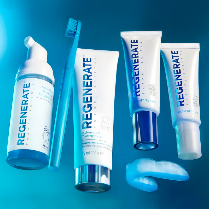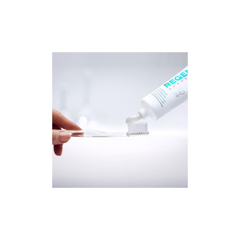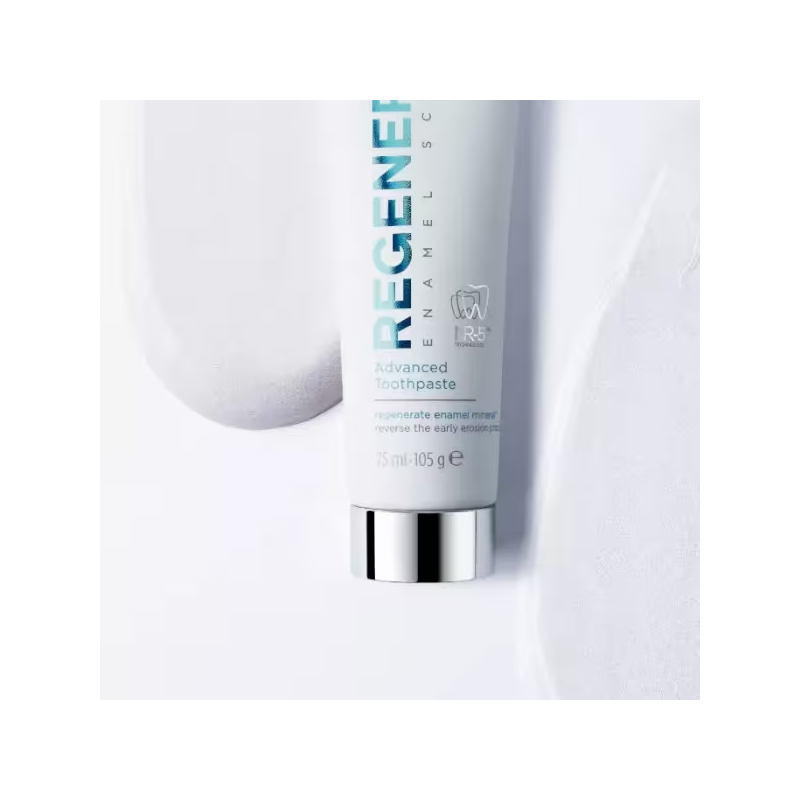 REGENERATE Enamel Science es una innovadora pasta dentífrica formulada con NR-5™, una tecnología patentada que actúa para regenerar el esmalte desde la primera capa, restaurando el contenido mineral con la misma composición que el esmalte natural. Especialmente indicada para personas con esmalte debilitado, sensibilidad dental o erosión ácida, esta pasta fortalece y protege los dientes, devolviéndoles su dureza y blancura natural. Su uso diario ayuda a prevenir las caries, la sensibilidad y otros problemas derivados de la pérdida de esmalte. Además, ofrece una sensación de limpieza profunda y frescor duradero.