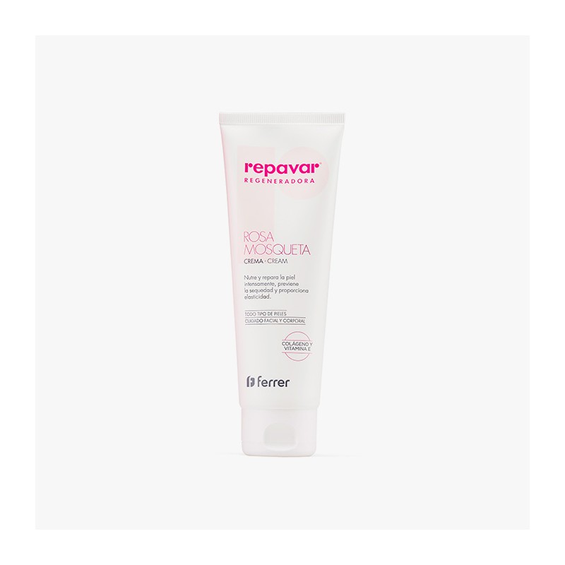 Repavar Regeneradora Crema es un tratamiento reparador formulado con Rosa Mosqueta y otros activos hidratantes y regeneradores que ayudan a mejorar la textura y apariencia de la piel dañada o envejecida.