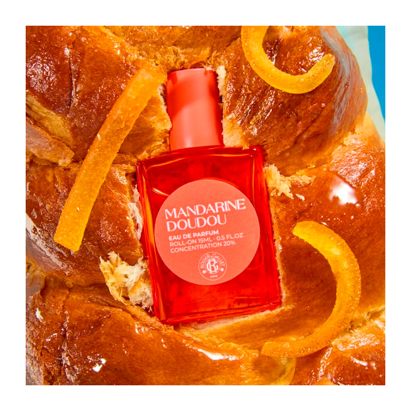 Perfume en roll-on gourmand y reconfortante con aroma concentrado de mandarina, azahar y notas dulces de brioche y haba tonka.