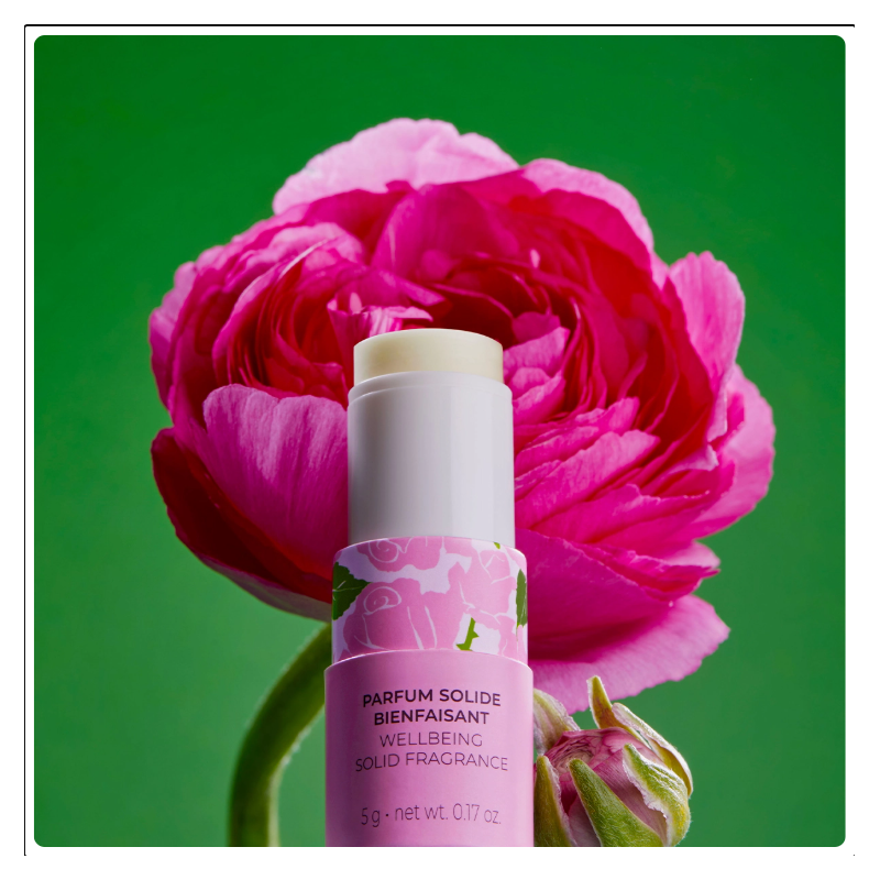 Perfume sólido con aroma delicado de rosa y notas almizcladas, perfecto para uso diario y pieles sensibles.