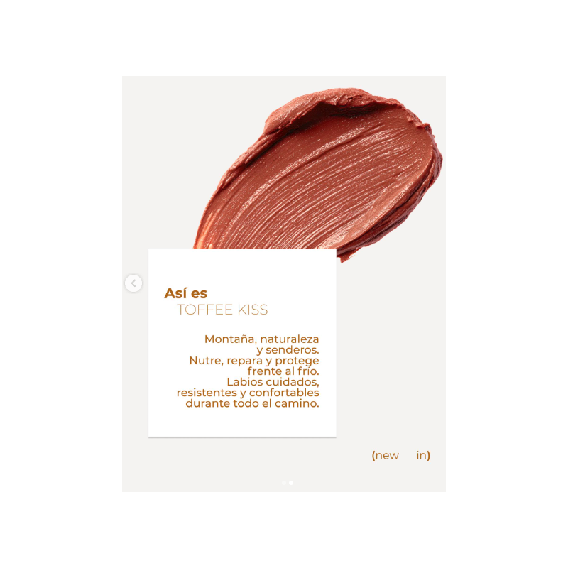 Bálsamo labial con color que hidrata, repara y aporta un efecto volumen natural, dejando los labios suaves, rellenos y con un tono Toffee elegante y cálido.