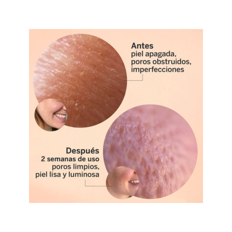 Este sérum ayuda a eliminar las células muertas, reduce imperfecciones y mejora la textura cutánea, dejándola más lisa y revitalizada. Es ideal para pieles que buscan un tratamiento exfoliante no abrasivo, apto para uso frecuente.