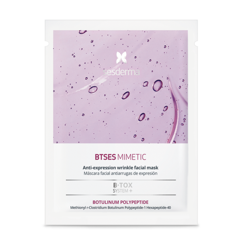 Sesderma BTSES Mimetic Máscara Facial está formulada con una innovadora combinación de péptidos miméticos y activos antiedad que actúan directamente sobre las líneas de expresión, ofreciendo un efecto tensor inmediato y ayudando a prevenir la formación de nuevas arrugas.