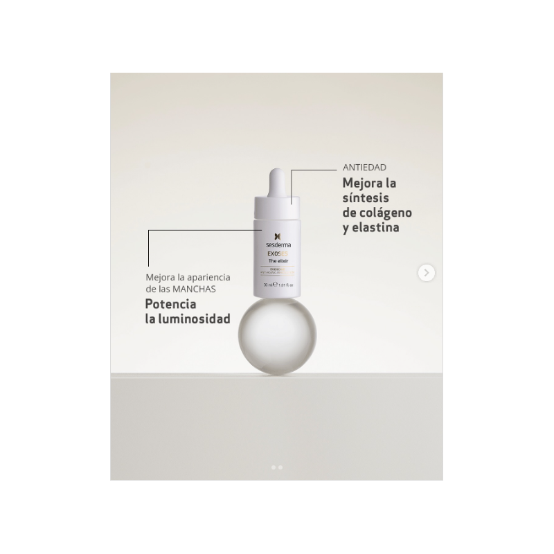 Sesderma Exoses The Elixir es un sérum de tratamiento intensivo antiedad que incorpora exosomas —la última innovación en cosmética regenerativa— para transformar la piel desde el interior. Proporciona efecto rejuvenecedor, firmeza, luminosidad y mejora visible de arrugas profundas.