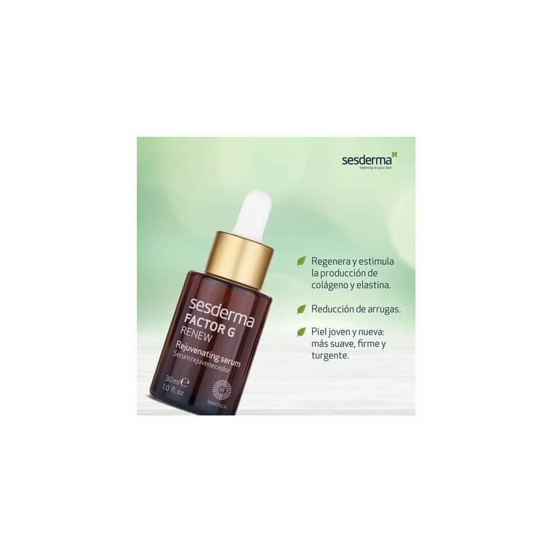 El Sesderma Factor G Renew Sérum 30 ml es un tratamiento antiedad global de origen 100% vegetal que ayuda a rejuvenecer visiblemente la piel.