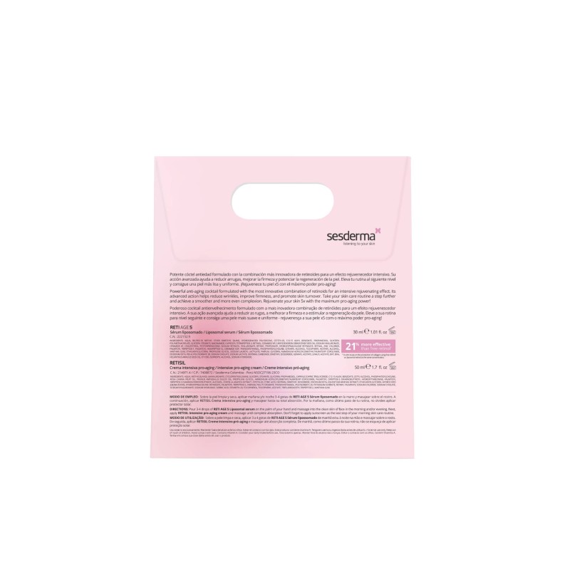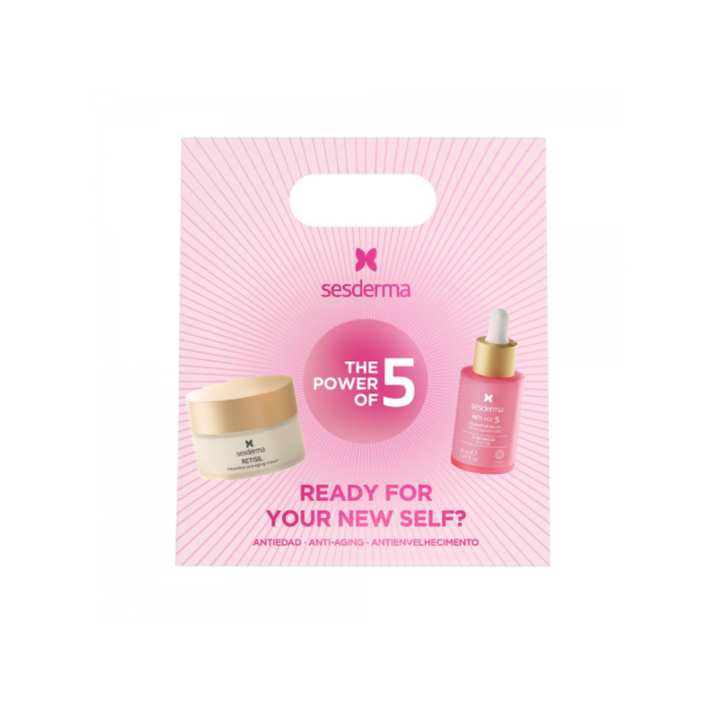 El Pack Sesderma Power Of5 Antiedad combina el Reti Age Sérum y la Retisil Crema, una rutina pensada para acompañar la apariencia de firmeza, suavidad y renovación de la piel.