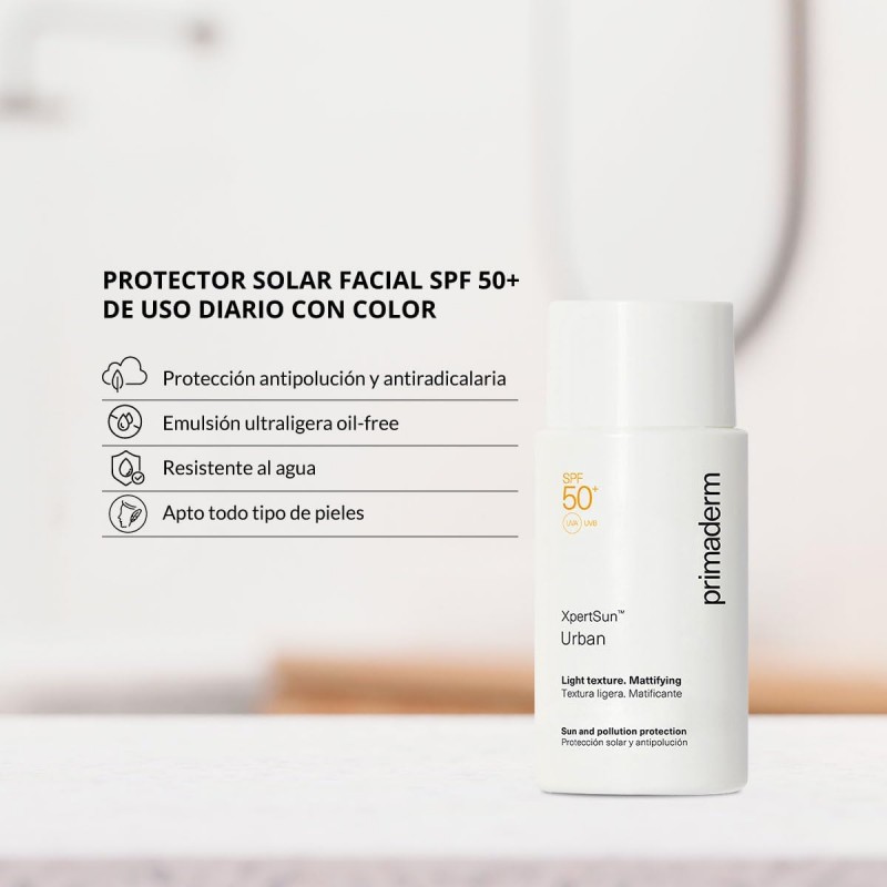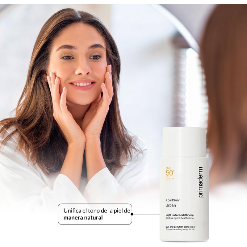 Singuladerm Xpert Sun Urban SPF 50+ 50 ml es un fotoprotector facial urbano de alta eficacia que protege frente a la radiación solar, la polución y la luz azul. Ideal para el día a día en entornos urbanos, previene el envejecimiento prematuro y mejora la luminosidad de la piel.