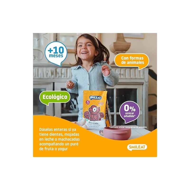 Smileat Galletas de Espelta, Avena y Cacao combinan harina de espelta integral, avena y cacao ecológico, creando un snack nutritivo, delicioso y natural para los más pequeños. Su receta sin azúcares añadidos ni aditivos artificiales garantiza un producto sano y seguro, favoreciendo hábitos alimenticios saludables desde temprana edad. Son fáciles de digerir, aportando energía y fibra para un desarrollo equilibrado.