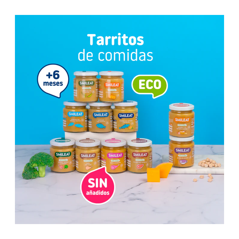 Potito completo con merluza y arroz, ideal para introducir el pescado en la alimentación del bebé de forma suave, equilibrada y fácil de digerir.