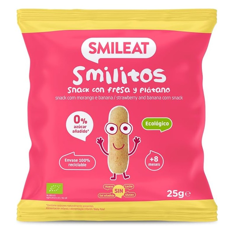 SMILEAT SMILITOS SNACK ECO SABOR FRESA Y PLATANO BOLSA 25G