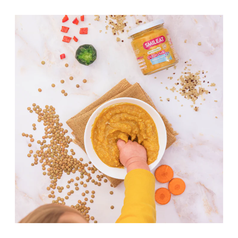 Potito 100% ecológico a base de lenteja roja y quinoa, para bebés a partir de 10 meses.
