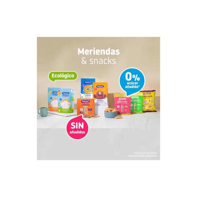 Smilitos son deliciosos snacks horneados con sabor a manzana y plátano para que los más peques de la casa picoteen entre horas.