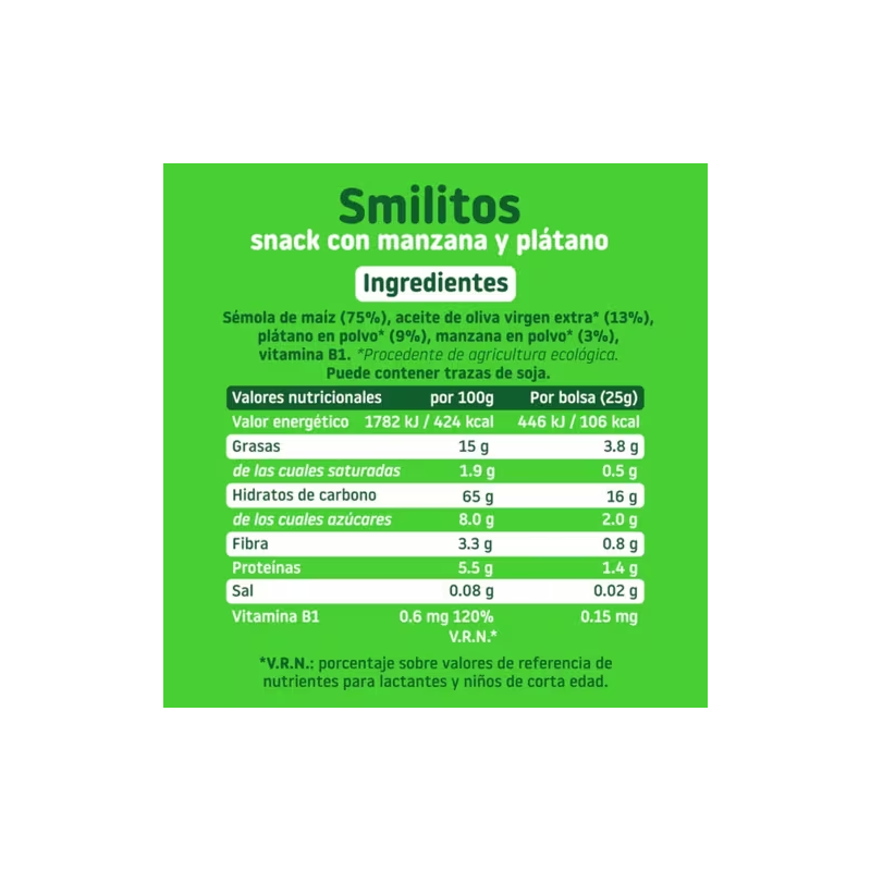 SMILITOS SNACK ECO SMILEAT CON MANZANA Y PLATANO BOLSA 25 G