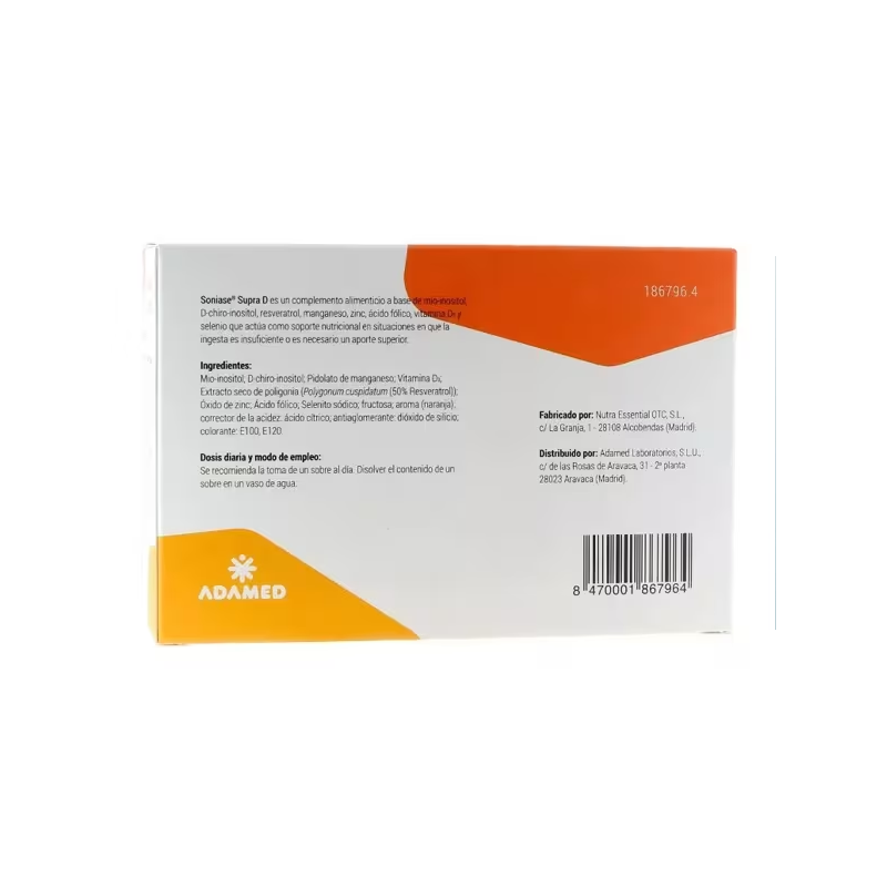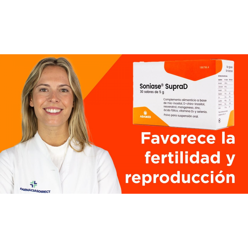 Soniase Supra D es un complemento alimenticio en sobres, formulado con vitaminas, minerales y antioxidantes que contribuyen al bienestar general y apoyo a la fertilidad. ✔️