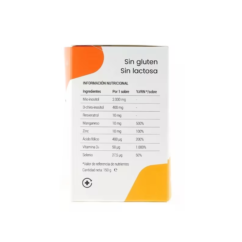 Casa sobre contiene: Incremento de volumen (Fructosa); Mio-Inositol 2000 mg; D-Chiro-Inositol 400 mg; Pidolato de Manganeso; Aroma (naranja); corrector de la acidez (E330); Vitamina D3; Extracto seco de Poligonia (Polygonum cuspidatum (50% Resveratrol)) 10 mg; óxido de Zinc; Antiaglomerante (E551); colorante (E102, E129); Ácido Fólico; Selenito sódico.
