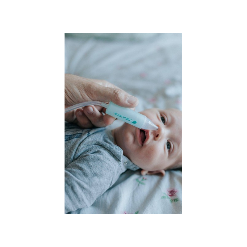 El Aspirador Nasal Suavinex +0 meses está especialmente diseñado para limpiar de forma delicada y efectiva las fosas nasales del bebé, favoreciendo una mejor respiración, sobre todo durante resfriados o procesos catarrales.
