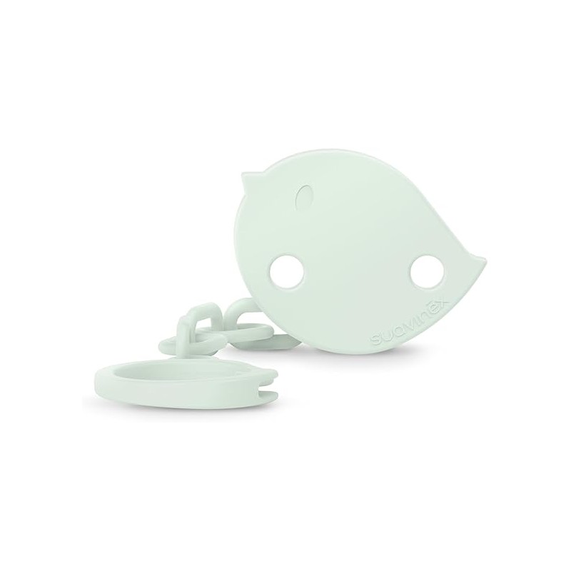 Broche de pinza con cadena Suavinex, seguro y práctico para sujetar el chupete del bebé. Apto desde 0 meses, disponible en distintos colores y modelos.