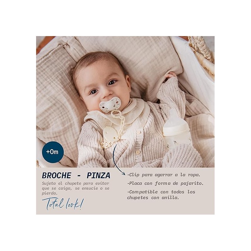 Gracias a su diseño cuidado y a la variedad de colores y modelos disponibles, se adapta a todos los estilos, combinando funcionalidad y estética. Su pinza permite una sujeción firme a la ropa sin dañarla, ofreciendo tranquilidad a padres y cuidadores desde el nacimiento.