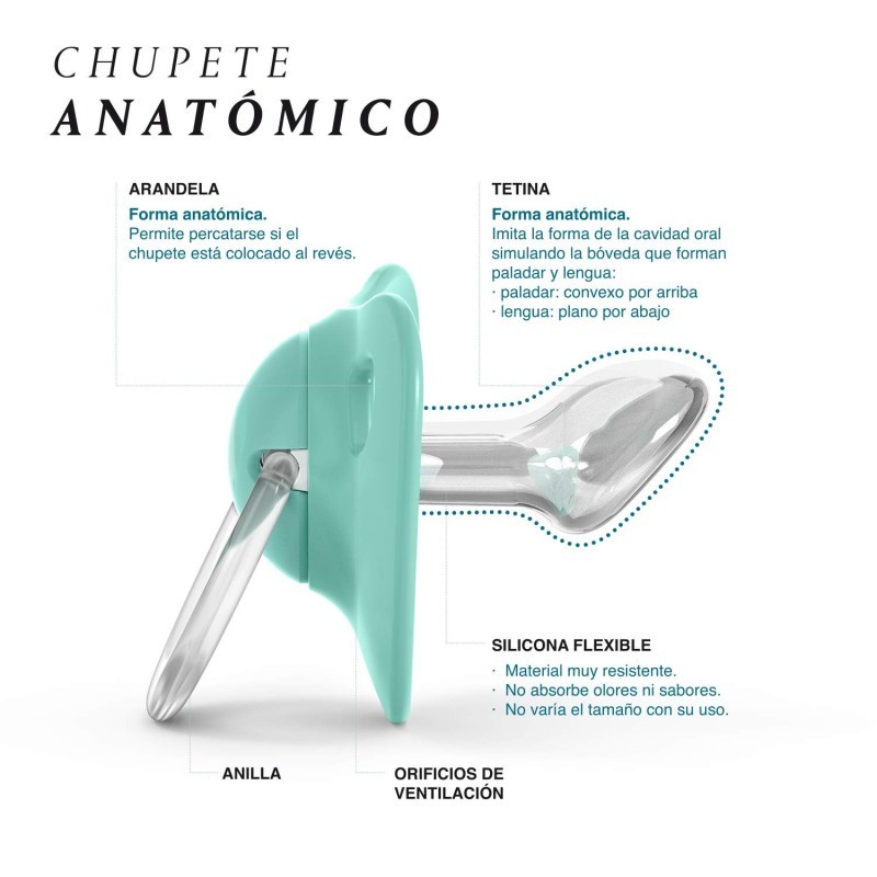 Chupete de silicona anatómico para niños de 0-6 meses.