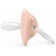 Su tetina tiene una forma plana y simétrica, con cabeza más corta y plana, y cuello más fino y ancho, favoreciendo un correcto desarrollo oral sin interferencias. Fabricado en silicona médica segura y suave, este chupete ofrece la máxima comodidad y protección para bebés de 6 a 18 meses.
