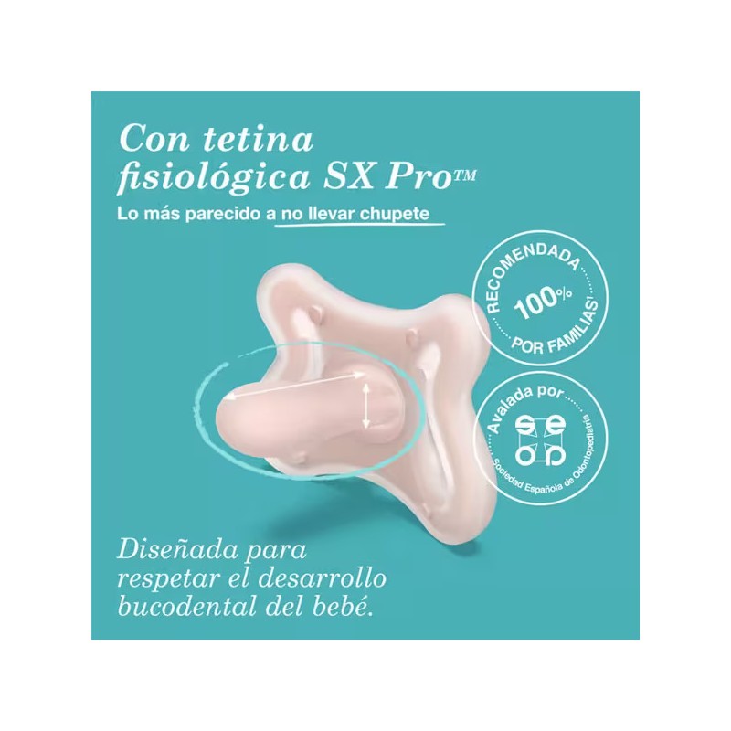 Chupete de silicona fisiológico para niños de 0-6 meses.