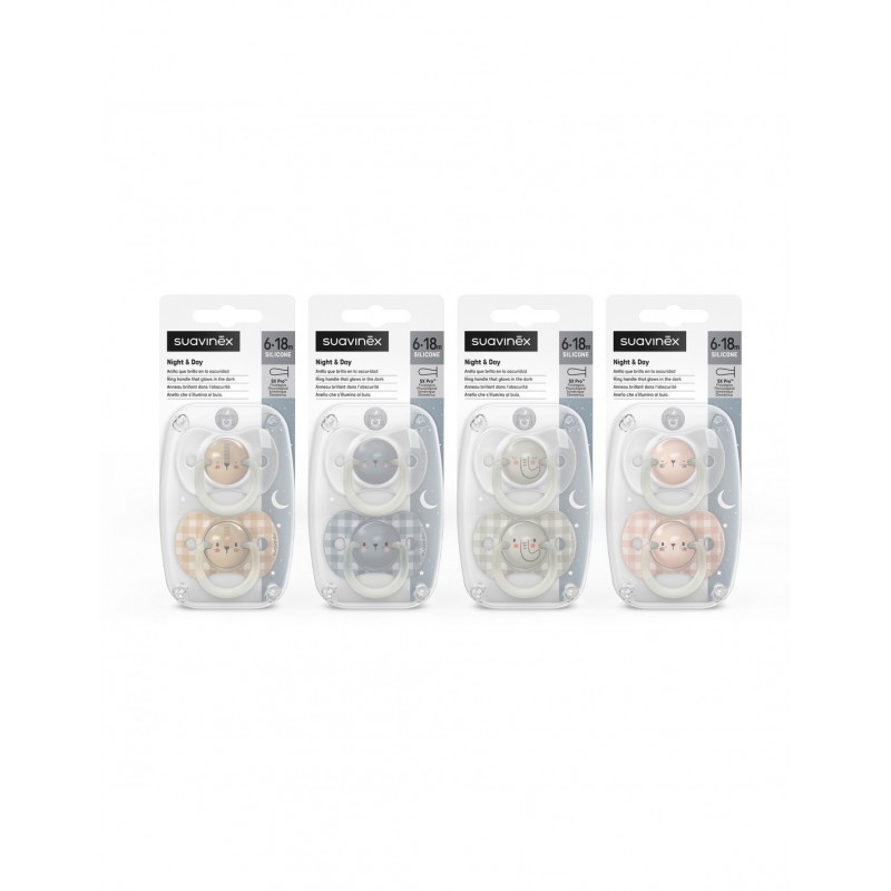 El chupete Suavinex SX Pro Night & Day está diseñado para respetar el desarrollo bucodental del bebé. Con tetina fisiológica de silicona y detalles que brillan en la oscuridad, es ideal para bebés de 6 a 18 meses, tanto de día como de noche.