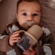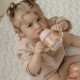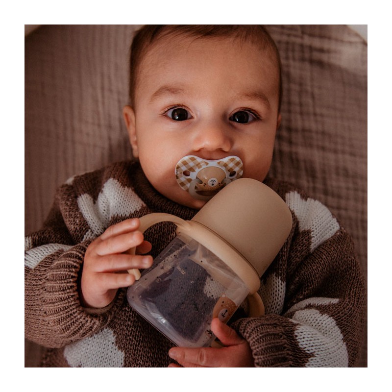Su tetina de silicona blanda con sistema antiderrame ayuda a evitar escapes de líquido, mientras que su diseño anticólico permite una succión más natural. Además, brilla en la oscuridad, lo que lo hace especialmente práctico durante la noche, ya que permite localizarlo fácilmente sin encender la luz.