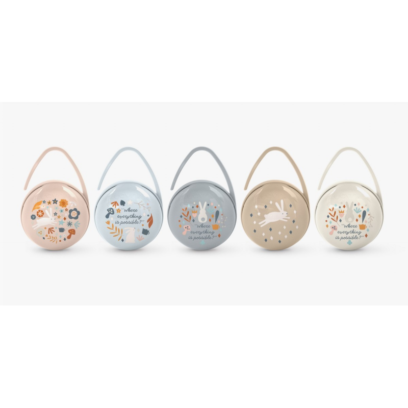 Portachupetes Duo que permite guardar y transportar 2 chupetes de forma cómoda y manteniéndolos a mano para cuando se necesiten.