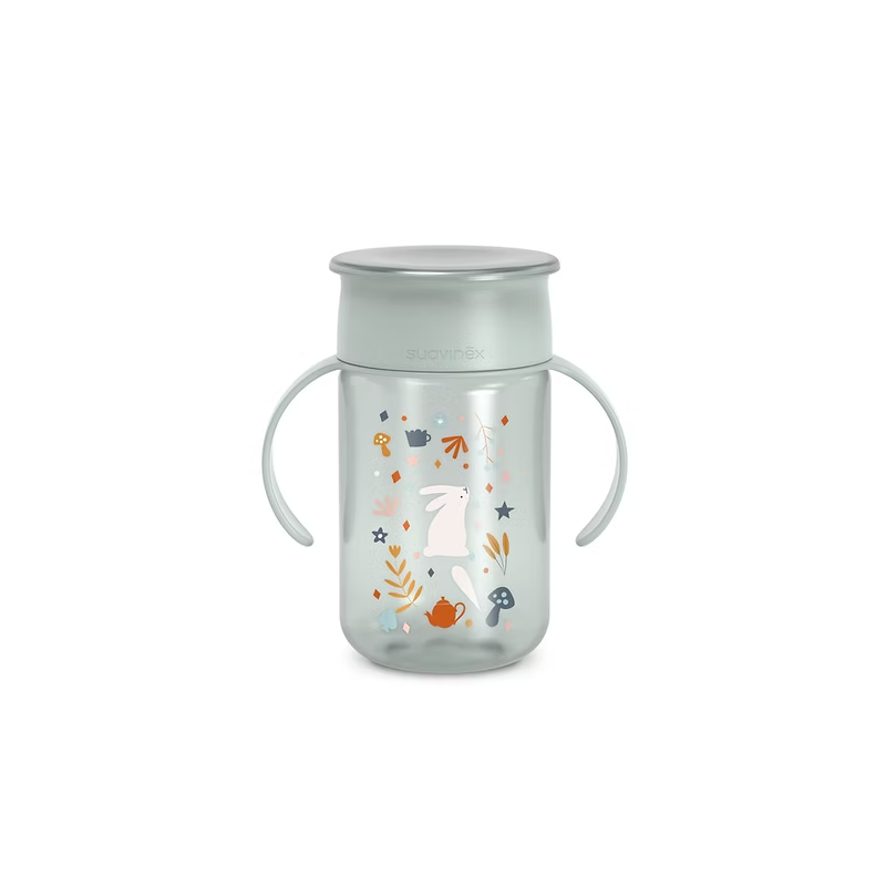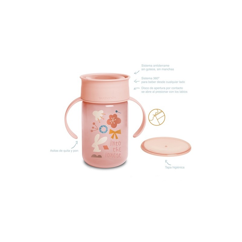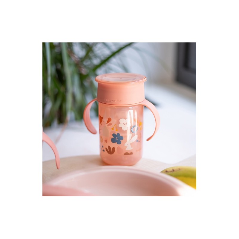 Taza de aprendizaje 360º Suavinex, para bebés a partir de 12 meses, con capacidad de 340 ml y sistema antiderrame.