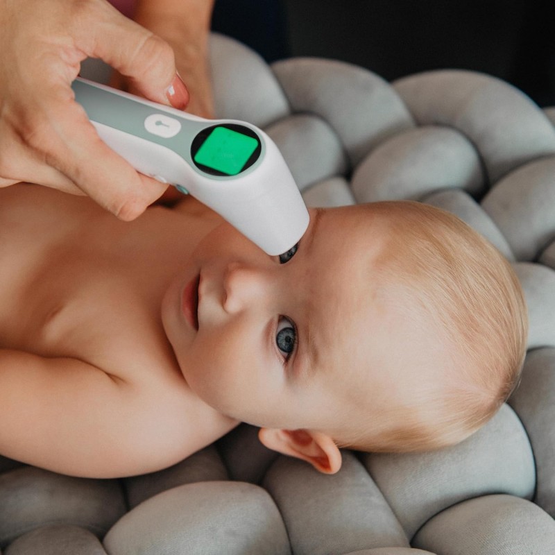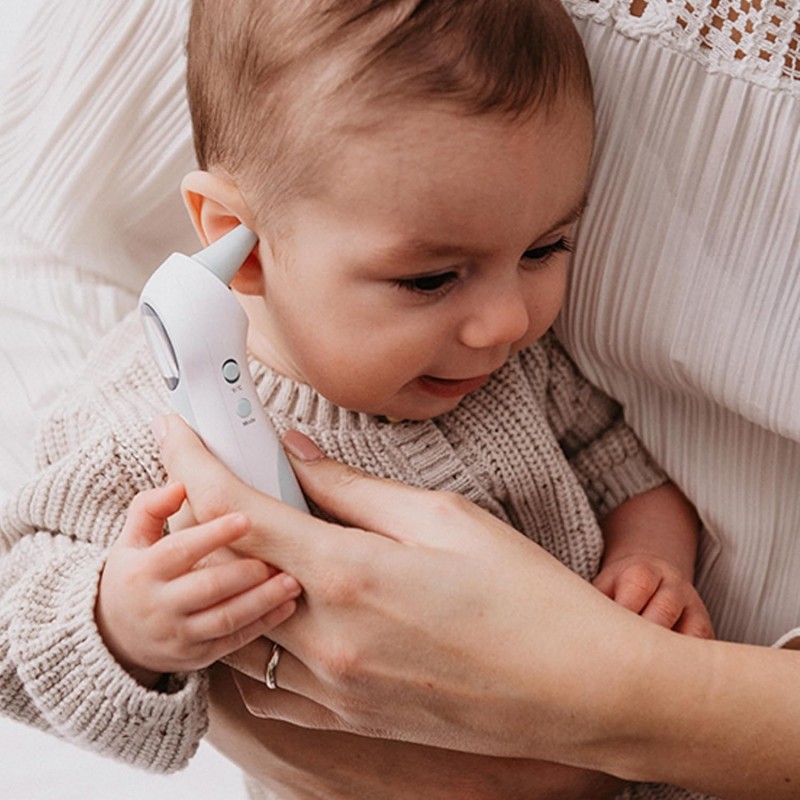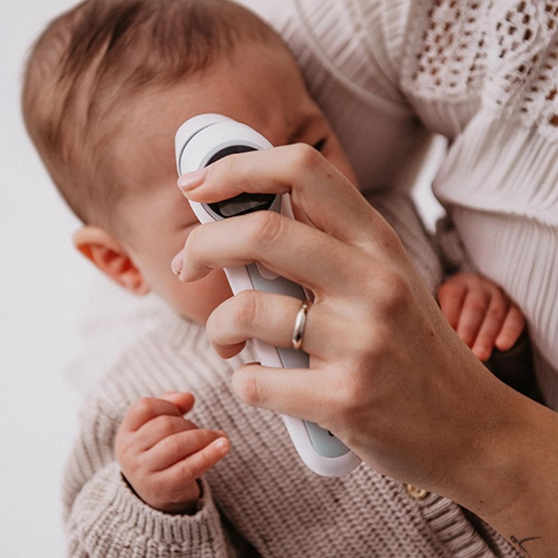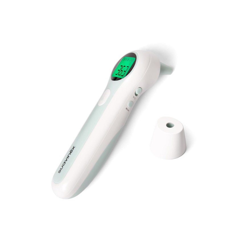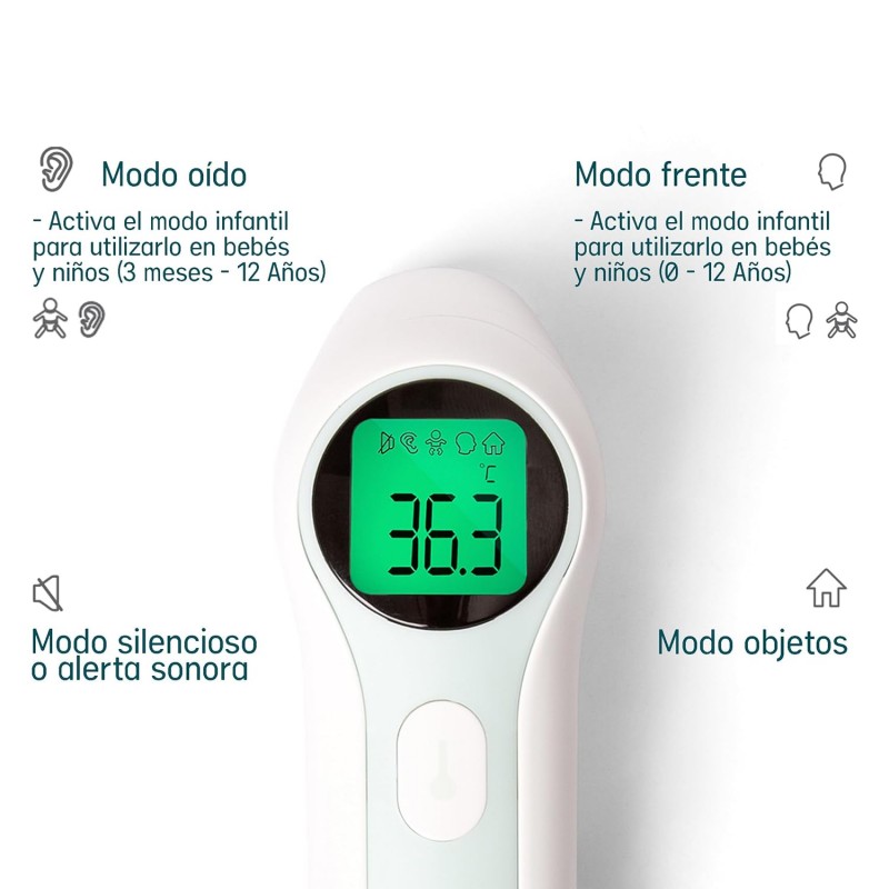 Termómetro digital por infrarrojos sin contacto que mide la temperatura en frente y/ oído, en tan solo 1 segundo, de forma rápida, precisa y cómoda, sin necesidad de despertar o molestar al bebé. Apto a partir de 0 meses, para toda la familia.