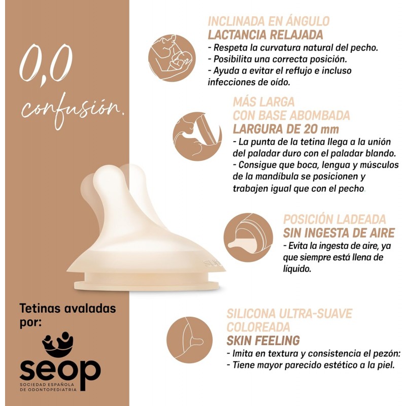 Son compatibles exclusivamente con los biberones Suavinex Zero Zero y están indicadas para leche materna, fórmulas o agua en el segundo trimestre de vida.