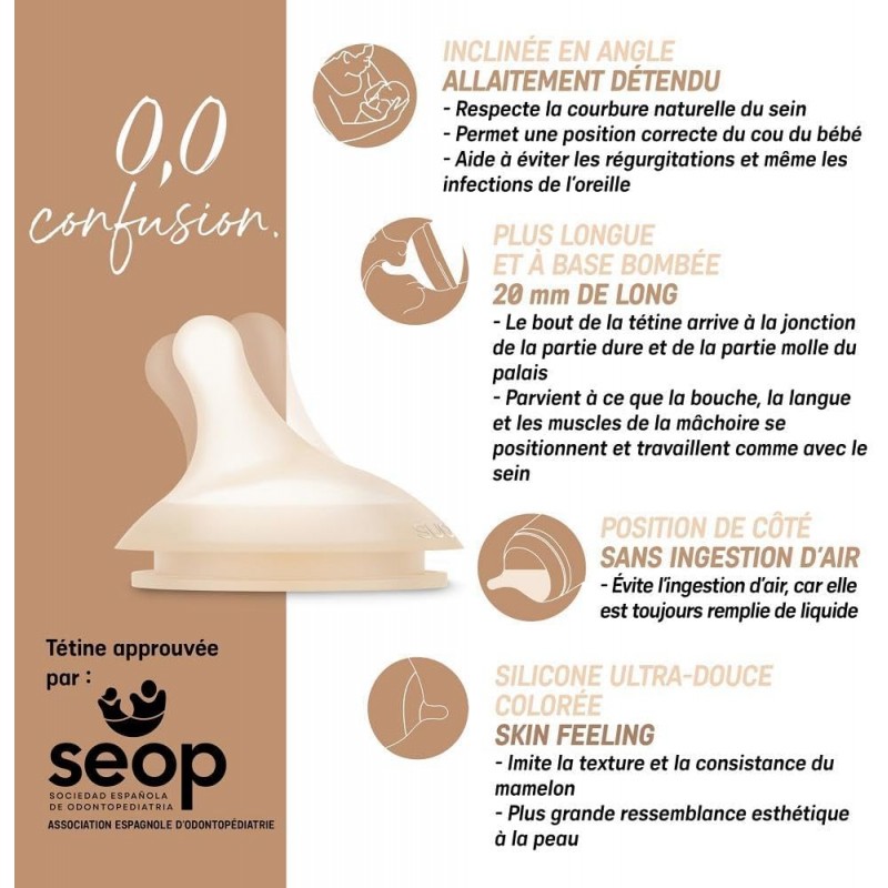 Más informaciónPack de 2 tetinas de silicona ultra-suave que simula en forma, longitud y tacto el pezón materno. Especial para el biberón Suavinex Zero.ZeroTM. Imita física y fisiológicamente el pecho de la madre evitando la confusión.