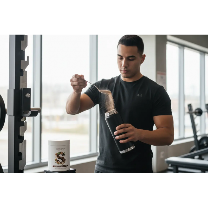 Fórmula en polvo diseñada para potenciar la vitalidad masculina, mejorar la energía, el rendimiento físico y apoyar la producción natural de testosterona.