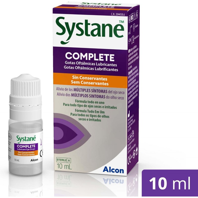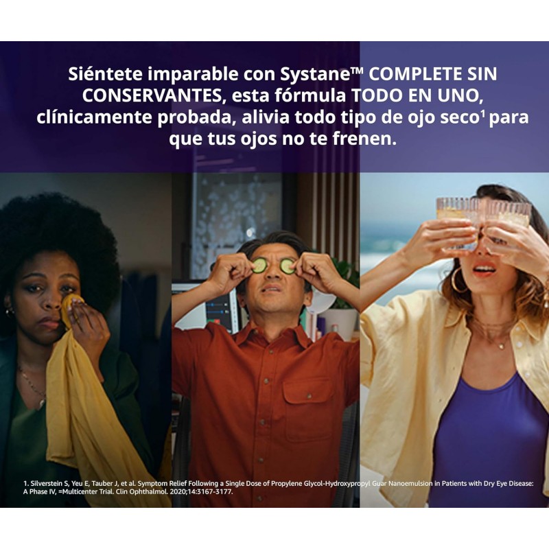 SYSTANE Complete Lubricantes Sin Conservantes 10 ml es la opción ideal para quienes buscan un alivio integral y duradero de la sequedad ocular, con la tranquilidad de una fórmula sin conservantes que es segura y efectiva para ojos sensibles y usuarios de lentes de contacto.