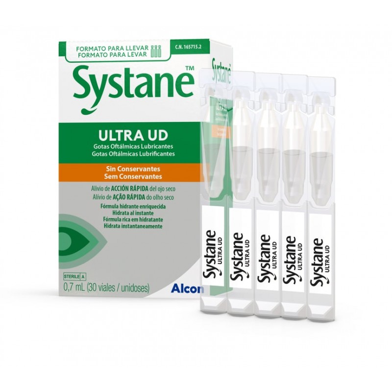 SYSTANE Ultra UD Lubricantes 30 Monodosis es una opción ideal para quienes buscan un alivio rápido y duradero de la sequedad ocular, con la conveniencia de un formato unidosis sin conservantes que asegura una aplicación higiénica y segura para ojos sensibles y usuarios de lentes de contacto.