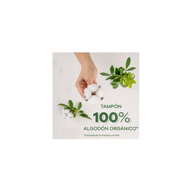 Tampones con aplicador fabricados con 100% algodón orgánico, diseñados para ofrecer protección y comodidad durante los días de flujo medio o abundante.