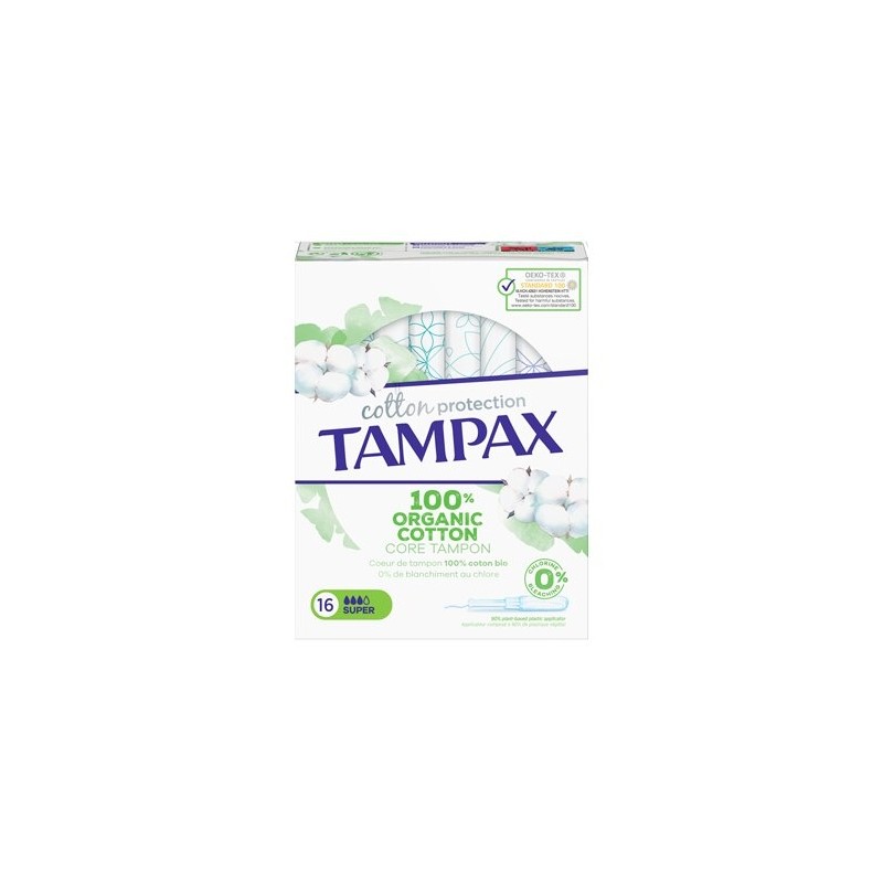 TAMPAX COTTON PROTECTION SUPER 100% ALGODON ORGANICO 16 TAMPONES SUPER CON APLICADOR