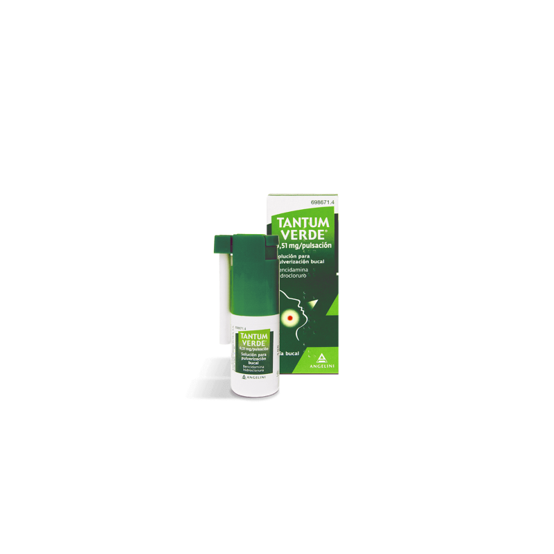 Tantum Verde Aerosol Bucal 0,51 mg/pulsación 15 ml ayuda a aliviar el dolor y la inflamación de la garganta, ofreciendo un efecto calmante inmediato.