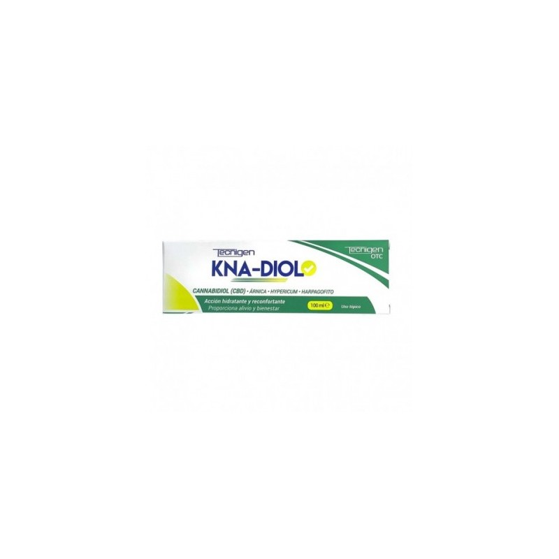 KNA-DIOL Tecnigen Crema 100 ml es una crema de uso tópico formulada con cannabidiol (CBD), árnica, hipérico y harpagofito, ingredientes reconocidos por sus propiedades calmantes y antiinflamatorias. Su textura ligera y de rápida absorción proporciona un alivio eficaz para el malestar muscular y articular, ayudando a relajar y recuperar la zona afectada tras el esfuerzo físico o el estrés diario. Ideal para deportistas y personas activas que buscan un cuidado natural y efectivo.