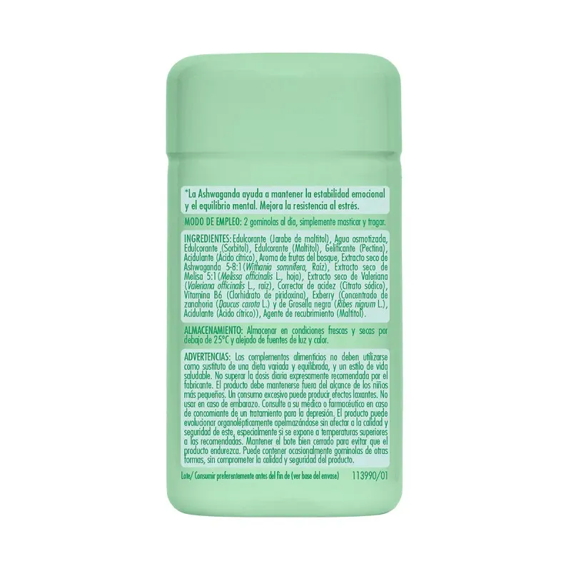 Gominolas con vitaminas, magnesio y plantas adaptógenas. Favorecen el equilibrio emocional, el ánimo positivo y la reducción del estrés. Sin azúcares añadidos.