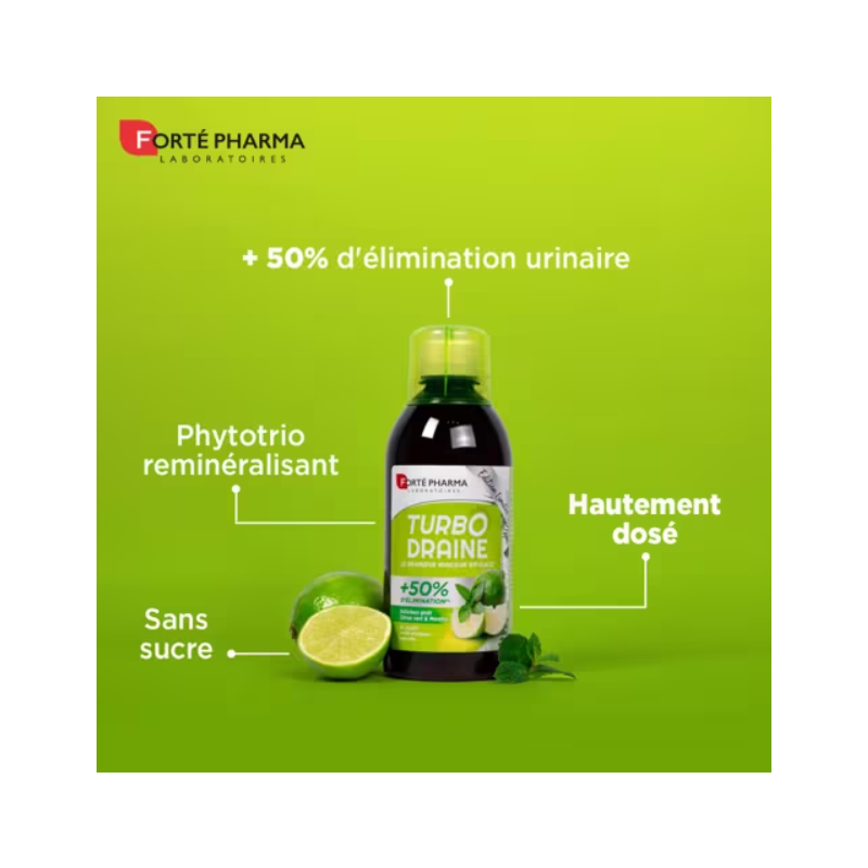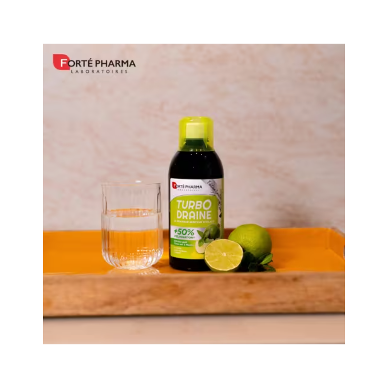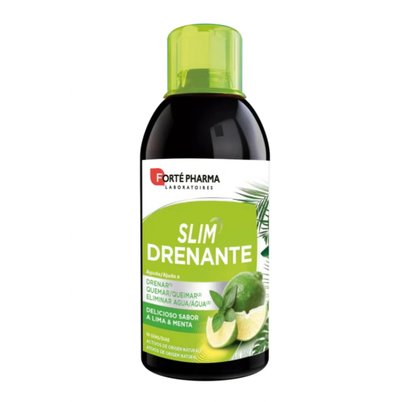 Complemento alimenticio en solución oral con efecto drenante completo, favorece la eliminación de líquidos y con sabor a lima y menta.