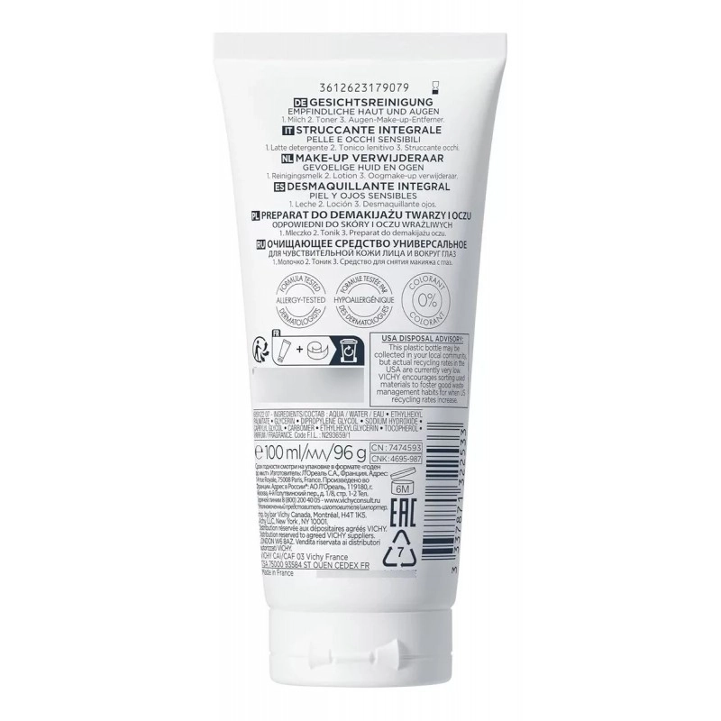Gracias a su textura cremosa y ligera, elimina eficazmente el maquillaje del rostro y de los ojos, incluso resistente al agua, sin necesidad de aclarado. Aporta una agradable sensación de frescor y confort, dejando la piel hidratada, suave y perfectamente limpia.