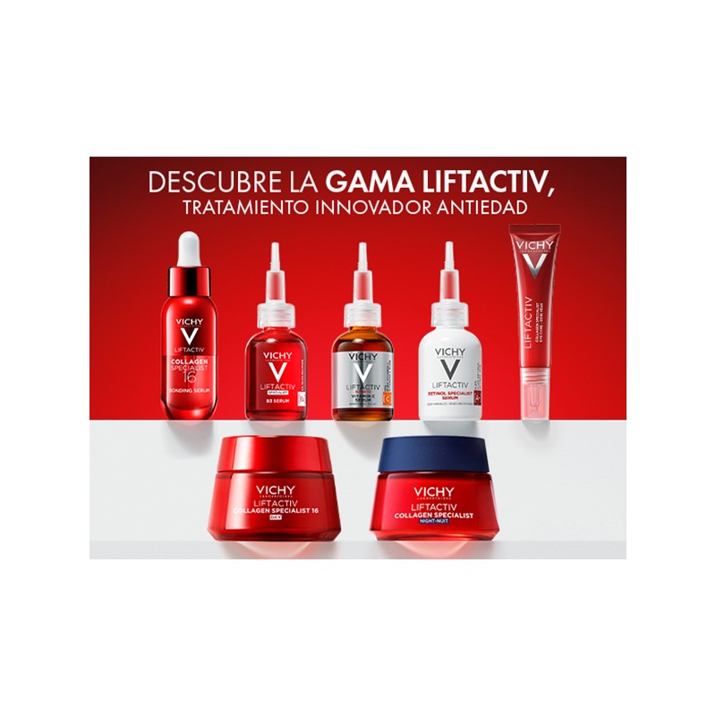 Vichy Liftactiv Collagen Specialist Noche 50ml es un tratamiento facial nocturno diseñado para combatir los signos del envejecimiento causados por la pérdida de colágeno. Su fórmula avanzada actúa durante la noche para reparar y regenerar la piel, reduciendo arrugas, mejorando la elasticidad y proporcionando un aspecto más firme y luminoso al despertar.