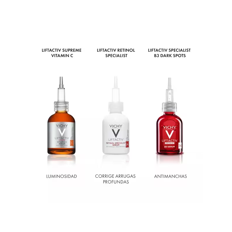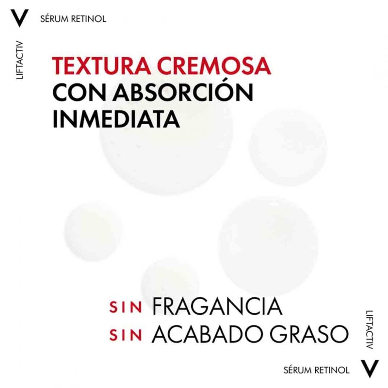 Vichy Liftactiv Serum Retinol Specialist es un tratamiento de alta eficacia formulado con retinol puro al 0,2% y fracciones probióticas, diseñado para reducir visiblemente las arrugas más profundas y mejorar la calidad de la piel.