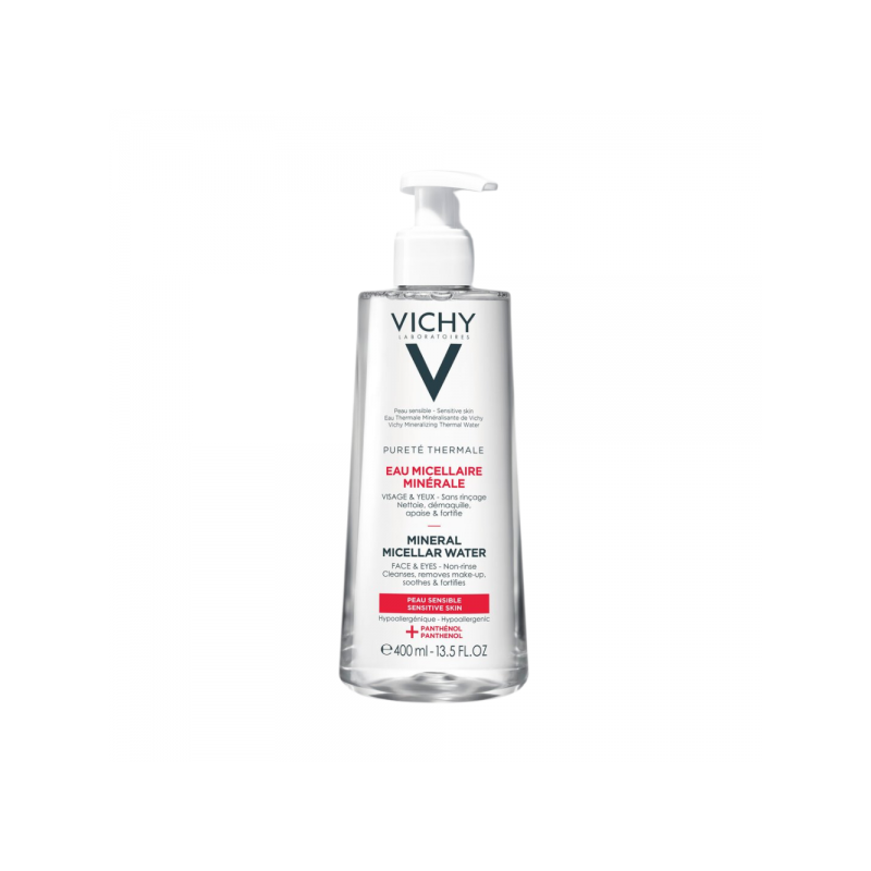Agua micelar con agua volcánica de Vichy que limpia, desmaquilla y purifica la piel sensible respetando su equilibrio natural.