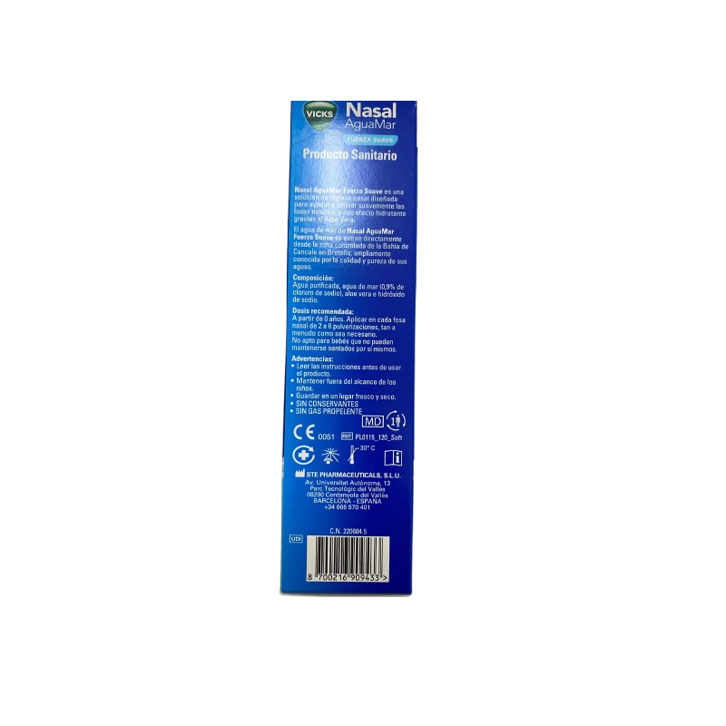 Más informaciónVicks Aguamar Fuerza Suave es un spray nasal de agua de mar isotónica purificada, enriquecida naturalmente con minerales marinos. Gracias a su fórmula delicada y su pulverización ultrasuave, está indicado desde los 0 meses, ayudando a eliminar suavemente la mucosidad, alérgenos y partículas del aire que pueden irritar la nariz de los más pequeños.